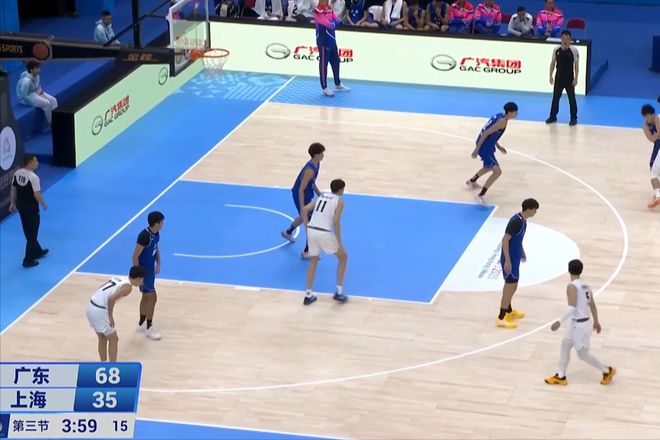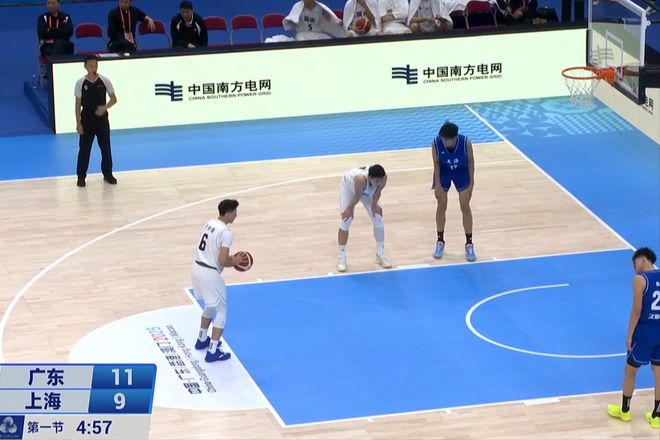 首节,王浩然三分不中,但是随后中投命中,身高两米二的郭丰玮篮下暴扣打进,杨溢虽然三分不中,但是随后抢断反击上篮打进。身高226cm的替补中锋徐昕送出妙传,首节广东队24比14建立两位数领先优势。王浩然打满首节得到12分3篮板3助攻,上海队的陈俊杰单节3中0还有4失误。